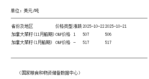 10月22日進(jìn)口油菜籽到國內(nèi)港口C&F報價